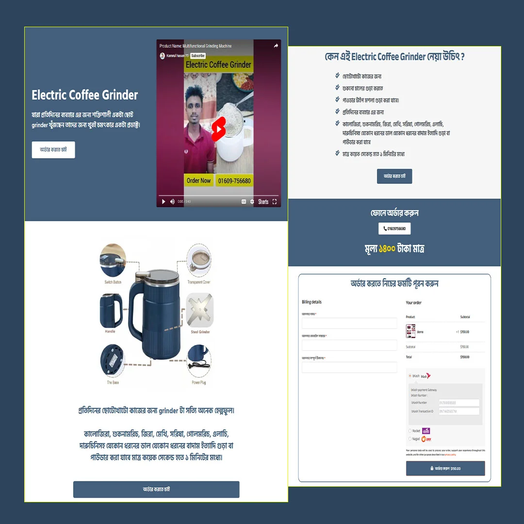 ☕ Electric Coffee Grinder – ঘরে বসেই প্রিমিয়াম কফি | Cartflows Landing Page
