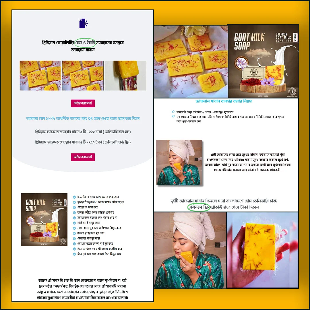 আপনার হ্যান্ডমেড, হারবাল বা প্রিমিয়াম সোপ ব্র্যান্ডের জন্য তৈরি Cartflows Ready ডিজিটাল ল্যান্ডিং পেইজ – যা আপনার পণ্যের সৌন্দর্য, বিশুদ্ধতা ও ব্র্যান্ড ভ্যালু ফুটিয়ে তুলবে নিখুঁতভাবে ✅